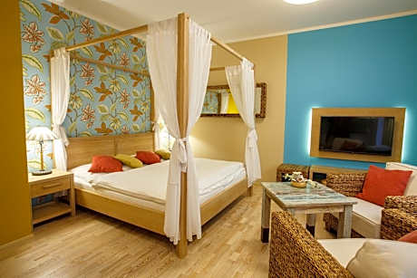 Vila Terra provides a hot spring bath and a hot tub, as well as accommodations with a kitchenette in Luhačovice. The condo hotel offers a spa experience, with its spa facilities, wellness packages, and steam room. There's a sun terrace and guests can access free Wifi and free private parking. The units at the condo hotel come with air conditioning, a seating area, a flat-screen TV with satellite channels, a safety deposit box, and a private bathroom with a shower, bathrobes, and slippers. A fridge, a minibar, and kitchenware are also featured, as well as a coffee machine and a kettle. At the condo hotel, all units include bed linen and towels. A selection of options including fresh pastries, champagne, and pancakes are served for the buffet breakfast. Sightseeing tours are available within a reachable distance. Guests can swim in the indoor pool, go cycling or hiking, or relax in the garden.