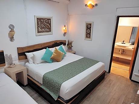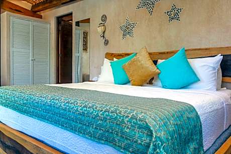 Villa Las Estrellas Tulum - located at the party zone is on a secluded beach on the Mayan Riviera, just 4 miles from the Tulum Archaological Site. Its stylish rooms offer free Wi-Fi and terraces with sea views. Rooms at Las Estrellas are in traditional thatched cabins, with hardwood floors and mosquito nets. Each elegant room has a laptop safe, a fan and a private bathroom with free toiletries. Villas Las Estrellas has a seafront restaurant, which serves a fusion of Mexican and Italian cuisine. You can also relax with a cocktail on the beach. The hotel can arrange bike rental, diving and snorkeling trips and visits to the nearby Sian Ka’an Biosphere Reserve. Cancun Airport is a 90 minute drive away, and airport transportation can be organized upon request.