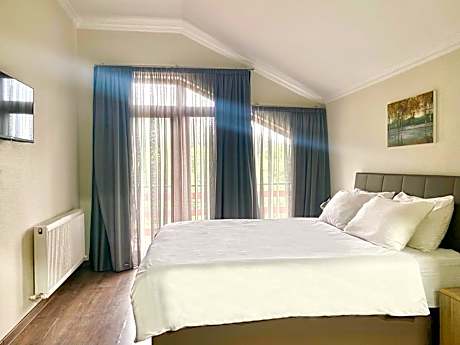 Featuring free WiFi throughout, Villa Mtashi is located in Bakuriani. This property offers heated houses with a fireplace and views of the surrounding mountains. Each house has 1 double bedroom, 1 quadruple bedroom, and 2 bathrooms with a bath or shower and free toiletries. Towels are provided. There is a living space with a sofa bed, flat-screen TV with cable channels, and dining table, while the kitchen is equipped with a microwave, fridge, toaster, and electric kettle. Bakuriani Train Station is 1.7 mi from Villa Mtashi, and you can find a restaurant and indoor pool 1640 feet away. There are many shops and cafés within a 10-minute drive of the property.