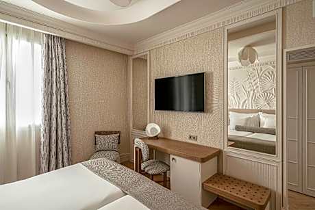 Set in a historic building, the Vincci Centrum is a boutique hotel located 984 feet from Gran Via and a 10-minute walk from the famous Puerta del Sol. Rooms have a flat-screen TV and free WiFi. The Vincci maintains its original façade and features a welcoming and sophisticated décor. Its stylish and comfortable bedrooms have air conditioning, a mini-bar and a private bathroom with a hairdryer. Some rooms feature a terrace. The on-site Bellini food&bar offers an innovative gastronomic concept, including signature tapas and a selection of wines and cocktails. A varied buffet breakfast is available every morning, including special products for celiacs. Guests can enjoy a drink in the lounge bar, where there is a selection of national and international newspapers. The Centrum is set within the artistic triangle of Madrid, consisted of by the Prado, Thyssen, and Reina Sofia Museums. The hotel is less than 0.6 mi from Retiro Park and Madrid’s Atocha Train Station is a 20-minute walk from the hotel. Barajas Airport is around 7.5 mi away. Private parking is available for an additional cost at a location nearby. Shops, bars and restaurants can be found in the surrounding Chueca and Gran Vía districts. The Thyssen-Bornemisza, Prado and Reina Sofía museums are within 20 minutes' walk of the hotel.