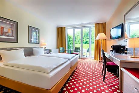 This elegant, 4-star hotel offers a large spa area and free WiFi. It is located in the heart of the spa town of Bad Arolsen, next to the town's Baroque castle. The Welcome Hotel Bad Arolsen has spacious rooms with satellite TV, work desk and mini-bar. Some rooms are located in the former annexes of the Residenzschloss Castle. The Welcome Hotel Bad Arolsen's “WELCOME SPA” features a variety of saunas. Beauty treatments and massages can be booked here too. The Schlossgasthof and Remise restaurants offer a wide range of international specialties. Drinks and snacks are available at the Plückers bar or the Orangerie bistro.