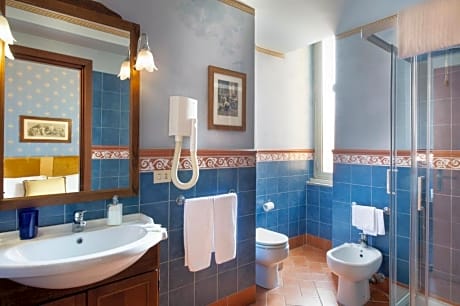 Room with attached bathroom with air conditioning, free Wi-Fi, and a satellite TV. Please specify bed preference when booking.