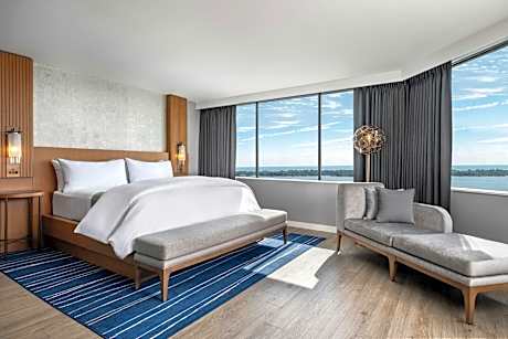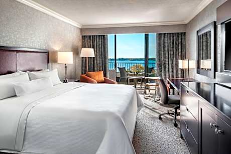 Este gran hotel de 4 estrellas ofrece alojamiento de lujo bien equipado con habitaciones selectas con vistas al lago Ontario y al espectacular perfil urbano de Toronto. Cuenta con piscina cubierta, pistas de tenis en la azotea y gimnasio. Cada una de las amplias y cómodas habitaciones del Westin Harbor Castle Toronto cuenta con la exclusiva cama Westin Heavenly Bed y una gran variedad de comodidades modernas y elegantes que ofrecen lo máximo en lujo. Tanto si visita Toronto por negocios como si explora la ciudad como turista, el magnífico alojamiento del hotel, las impresionantes instalaciones, el llamativo edificio y las espectaculares vistas lo convierten en una excelente opción. El Westin Harbor Castle Toronto, que admite mascotas y está frente al mar, ofrece conexión Wi-Fi gratuita en las zonas comunes del establecimiento. El Westin Harbor Castle Toronto se encuentra a 7 minutos a pie del Harbourfront Center y del Scotiabank Arena. El animado Toronto Eaton Center, repleto de tiendas, está a 1,6 km.