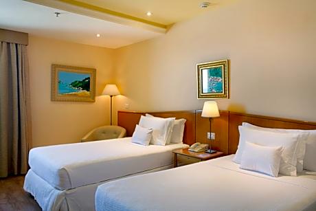 Este hotel está situado frente a la preciosa playa de arena de Barra da Tijuca y los huéspedes encontrarán innumerables atracciones cerca, como bares y restaurantes, lugares para salir por la noche, grandes centros comerciales con marcas de renombre mundial y de diseño, parques temáticos, reservas naturales y deportes de todo tipo. Las paradas de transporte público más cercanas están a sólo 50 m (parada de Alvorada). Este hotel de conferencias ofrece 5 plantas de alojamiento para no fumadores y 15 habitaciones adaptadas para personas de movilidad reducida, con un total de 338 habitaciones. Las instalaciones a disposición de los huéspedes en este establecimiento climatizado incluyen zona de vestíbulo con recepción 24 horas y servicio de registro de entrada y salida 24 horas, caja fuerte, servicio de cambio de divisas, guardarropa y cafetería. Ofrece un bar, un restaurante y amplias instalaciones para conferencias, así como servicio de habitaciones y de lavandería. Hay aparcamiento y garaje para los que lleguen en coche. El centro de convenciones dispone de una entrada y una recepción independientes y ofrece más de 2.976 m² de salas de reuniones, algunas de ellas con techos de 5 m de altura, con capacidad para entre 20 y 1.200 personas. Las habitaciones están equipadas con aire acondicionado central, conexión a Internet de alta velocidad, 2 líneas telefónicas, contestador automático, ventanas insonorizadas, TV por cable y minibar. El amplio cuarto de baño, decorado con buen gusto, está diseñado para el confort y ofrece ducha/bañera. Además, todas las habitaciones disponen de secador de pelo, set de plancha, cama doble o extra grande y terraza. Este hotel dispone de una piscina al aire libre climatizada con zona para niños, bar de aperitivos, tumbonas y sombrillas. Los huéspedes también pueden disfrutar del baño de hidromasaje y la sauna, así como de la terraza y el baño de vapor. Los amantes del deporte pueden hacer ejercicio en el gimnasio.