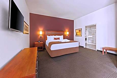 Offering free toiletries and bathrobes, this suite includes a private bathroom with a walk-in shower, a bath and a hairdryer. Meals can be prepared in the kitchenette, which is fitted with a stovetop, a refrigerator and a microwave. The suite has carpeted floors, a seating area with a flat-screen TV with streaming services, air conditioning, a coffee machine, as well as a wardrobe.