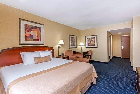 Located 4 miles from Greenville-Spartanburg International Airport, this South Carolina hotel offers airport shuttles with additional charges and a seasonal outdoor pool. Its spacious rooms feature cable TV with HBO and free Wi-Fi. Each room has a microwave, small refrigerator and an ergonomic desk chair. The rooms at Wingate by Wyndham Greenville Airport also provide a desk and safe. During their stay, guests can enjoy a continental breakfast. They can also use the 24-hour business center, which offers copy and print services. Guest laundry and valet dry cleaning services are available for a fee. Airport shuttle available upon request. Downtown Greenville is 8.2 mi away.