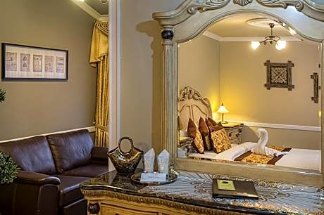 This room features a flat-screen TV, a seating area and a private bathroom.