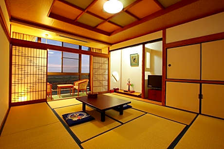 The triple room features air conditioning, tatami, as well as a shared bathroom boasting a bath and a shower. The triple room provides a dining area, a wardrobe, a safe deposit box, an electric kettle and a flat-screen TV. The unit has 3 futons.