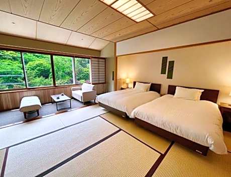 This triple room's standout feature is the private open-air bath. Offering free toiletries and bathrobes, this triple room includes a private bathroom with a bath, a shower and a bidet. The air-conditioned triple room offers a flat-screen TV, a safe deposit box, an electric kettle, a sofa as well as mountain views. The unit has 3 beds.