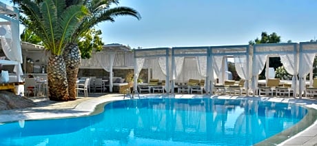 This beach hotel is situated on the south part of the island, in Paraga beach, between Paradise area which is 300 metres away and Platy Yalos beach, 1 km from the property. The resort provides guests with a choice between 30 standard rooms, 2 superior rooms and 2 apartments with kitchen. Each room has access to a private bathroom and balcony and is equipped with air conditioning, telephone and satellite TV. In the outdoor complex guests will find ideal settings for sunbathing. It features a swimming pool with a pool bar for convenient refreshments, an open-air lounge and sun beds ready for use. A hot tub, sauna, gym and table tennis provide some relaxation and diversion for adults, while children can enjoy the colourful playground.
