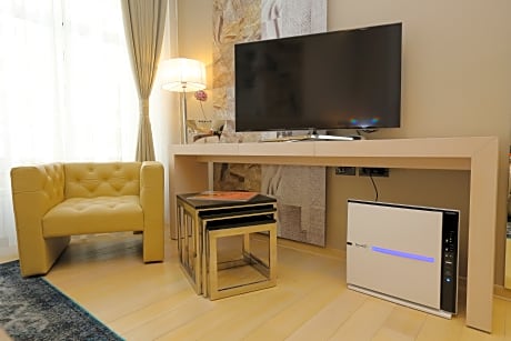 Located in Belgrade city center, Zepter Hotel Belgrade, part of Zepter Hotels, member of Zepter International, a world famous brand, is surrounded by the National Theater, art galleries and shops. Apartments at Zepter Hotel Belgrade, member of Zepter Hotels feature a TV, air conditioning and a mini-bar. There is also a coffee machine. Private bathrooms come with a hairdryer and bathrobes. Extras include a seating area, satellite channels and pay-per-view channels. At Zepter Hotel Belgrade, member of Zepter Hotels, you can enjoy the a la carte menu at Smartlife Restaurant or a coffee in Zepresso Aperitive bar. You can also work out in the fitness center, relax in the health bar and enjoy the sauna. If you feel like visiting the surroundings, the famous Kalemegdan fortress and Skadarlija bohemian quarter are just a few minutes away. Belgrade Central Station is 2953 feet away. Belgrade Nikola Tesla Airport is located 8.1 mi from the accommodations.