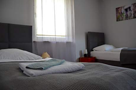 The triple room provides air conditioning and a tea and coffee maker, as well as a private bathroom featuring a walk-in shower. The triple room offers a flat-screen TV, a wardrobe, parquet floors, heating as well as city views. The unit offers 3 beds.