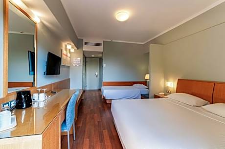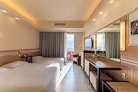 All-inclusive Esperides Beach enjoys a seafront location in Kallithea. Free sun beds and umbrellas are provided on the blue flag beach and around the 3 swimming pools. Facilities include 3 restaurants, 1 pool bar, 1 cafe bar and a bar for children, beach volleyball facilities and 2 tennis courts. All rooms open to a balcony with Aegean Sea or garden views. They come with a satellite TV, and a fridge. A hairdryer is offered. Meals are served at Diana restaurant on buffet, while buffet lunch is served during the summer season at Food Hall area. There are 2 pool bars and a beach bar offering refreshing drinks and cocktails. A bar for children is provided near the playground. Sport facilities include a mini golf, table tennis and canoeing. A Greek, Italian and Asian themed night per week is organized separately in Diana restaurant. Baby and children pools are also offered. Esperides Beach is 1.6 mi from Faliraki center and 8.1 mi from both Rhodes Town and the port. Rhodes International Airport at 11 mi. Free parking is possible on site.