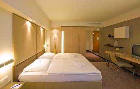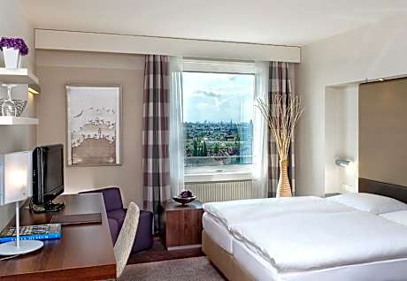 This 4-star-superior hotel in Berlin's Neukölln district is part of a large convention and entertainment center. It offers live shows, a spa, and a direct bus link to Schönefeld Airport. Free WiFi is available. The spacious rooms at the Estrel Hotel Berlin are decorated in soft, natural colors. Each room is air-conditioned and features soundproofed windows. The stylish bathroom includes a bathtub and hairdryer. Guests booking this accommodations enjoy free access to the on-site spa. International cuisine is served in the Estrel’s 3 restaurants. These are located in the large, timelessly elegant atrium. There are also 2 bars and a garden overlooking the Neukölln canal. Musical and comedy concerts are shown on site. Guests can also relax in the Estrel’s sauna or work out in the gym. Sonnenallee S-Bahn Station is just a 2-minute walk from the Estrel Berlin. Trains run directly to the ICC Exhibition Center.