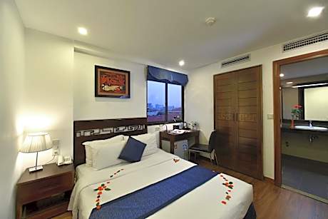 At Eternity Hanoi Hotel, exceptional service and top-notch amenities create a memorable experience for guests.Complimentary internet access is available in the hotel to ensure you stay connected during your visit.Arrange your trips to and from the airport using the hotel's convenient transportation services booking.Discover the wonders of Hanoi with ease by utilizing the services provided by taxi, car hire and shuttle.For guests with their own vehicle, parking facilities are provided. Continuously receive the support you require through front desk amenities such as concierge service, express check-in or check-out, luggage storage and safety deposit boxes. At the hotel, their ticket service and tours is also capable of assisting with booking tickets and securing reservations for entertainment and adventures. Chilly nights become more delightful than balmy ones, as you snuggle near the hotel's inviting hearth.Always look your best in your preferred attire with the dry cleaning service and laundry service provided at Eternity Hanoi Hotel. Craving relaxation? In-room amenities such as 24-hour room service, room service and daily housekeeping allow you to maximize your time spent inside the room.Due to health concerns, smoking is strictly prohibited within the entire premises of hotel.For the health and well-being of all guests and staff, smoking is restricted exclusively to assigned zones.Accommodations come equipped with all the conveniences required for a restful night's slumber.A selection of rooms feature blackout curtains and air conditioning to ensure your comfort and convenience.A few accommodations at Eternity Hanoi Hotel also include unique design elements like a balcony or terrace.A few chosen rooms are equipped with television, in-room video streaming and cable TV to ensure guest amusement. In certain rooms, the hotel offers visitors access to a refrigerator, a coffee or tea maker, bottled water, instant coffee, instant tea and mini bar. Eternity Hanoi Hotel offers a hair dryer and toiletries in the restrooms of specific accommodations. At Eternity Hanoi Hotel, each day commences with a scrumptious breakfast offered at no additional cost.Allow your journey to be free from the pangs of hunger! On-site eateries offer delicious and accessible meal choices. At Eternity Hanoi Hotel, guests can take pleasure in the delightful recreational amenities provided for their entertainment. Conclude your days in complete tranquility by visiting the salon situated precisely at the hotel.