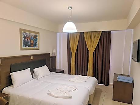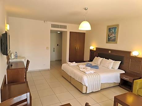 Euronapa Hotel is conveniently positioned only 1640 feet from Sandy Bay Beach and 984 feet from the lively center of Ayia Napa. It has an outdoor swimming pool and sauna. The Euronapa Hotel Apartments features a poolside snack bar and a lounge bar with satellite TV. Guests may relax in the hotel’s palm garden or sunbathe on the sundeck surrounding the pool. There is also a designated shallow pool for children. All apartments have a kitchenette and a cozy seating and dining area. Air conditioning, safety box and fridge are also available in the rooms free of charge. Guests at the Euronapa can make use of many recreational facilities, including a multipurpose sports court and a pool table. The popular Nissi and Limanaki Beaches are a 15-minute walk away. Within 328 feet you will find shops, bars, cafes and restaurants. Larnaka Airport is 34 mi from the hotel.