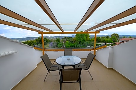 Hotel Europa Olympia is built on the top of Drouvas Hill in Ancient Olympia. It offers a 24-hour front desk, 3 bars (two indoors and one pool bar) and a Greek restaurant and a pool-side tavern, free parking and free Wi-Fi. Hotel Europa is set among the enchanting landscape of ancient Olympia with a view of the Arcadian Mountains and the Alfios Valley. It features 80 spacious and pristine guestrooms appointed with marble floors. Each offers balcony. Rich buffet breakfast is offered every morning in the breakfast room or in the privacy of the guests’ rooms. The Greek Tavern serves excellent Greek flavors. Hotel Europa Olympia has a beautiful outdoor pool offering a pool bar. The garden provides a relaxing setting after a day of sightseeing. The town center and nearby monuments are 0.6 mi away. Kaiafas Beach is only 12 miles away. Guests can visit the Temple of Apollo Epikourios (1.5 hours by car), the ski center at Helmos-Kalavrita (2.5 hours by car), the beach at Kaiafa (25 minutes by car) or the Medieval Castle at Chlemoutsi (45 minutes by car).