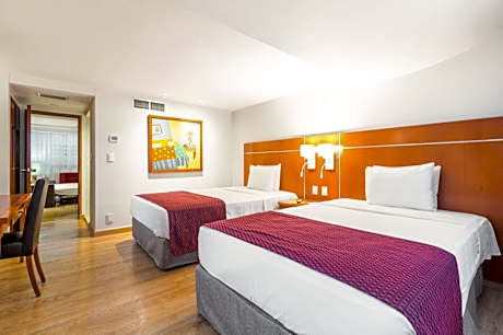 This spacious air-conditioned suite offers stylish modern décor, free Wi-Fi and large windows with city views. It includes a seating area, a work desk, a microwave and a private bathroom. The suite has 2 separate areas, the bedroom and the living room, has 2 large double beds and a sofa bed in the living room.