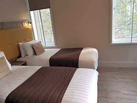 Less than 1148 feet from London Euston Station, the hotel offers stylish, modern and air-conditioned rooms. The Euston Square Hotel has a superb location, just a short walk from the British Museum, Regent's Park, British Library, Oxford Street and the theaters of the West End. Camden, with its eclectic mix of bars, restaurants, shops and markets is 10 minutes away by bus. Euston Square London Underground station is just yards away and the hotel is also just over half a mile (0.6 mi) from King's Cross Railway Station and St Pancras International, London's Eurostar terminal. All of the stylish and contemporary rooms have digital flat-screen TVs with built-in entertainment systems. An online music library, games console, internet, and business services are available via the TV.