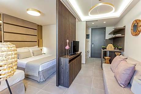Just a 4-minute walk from Hanioti Beach and 0.8 miles from Pefkohori Beach, Evitel Luxury Living features accommodations in Hanioti, with a shared lounge. Among the facilities at this property are an elevator and daily room service, along with free Wifi throughout the property. The accommodation provides airport transfers, while a bicycle rental service is also available. The condo hotel will provide guests with air-conditioned units with a wardrobe, a coffee machine, a toaster, a fridge, a safety deposit box, a flat-screen TV, and a private bathroom with a bath. At the condo hotel, all units have bed linen and towels. If you'd prefer to not eat out, you can make use of the kitchenette facilities, which include a stovetop, kettle, and kitchenware. A car rental service is available at the condo hotel. Thessaloniki Airport is 57 miles away.