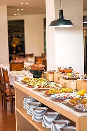 Besides 2 outdoor pools, the Evora Hotel is surrounded by landscaped gardens and offers a heated indoor pool and health club on the edge of Évora, along the Av. Túlio Espanca. All guest rooms have a private balcony. The Hotel has a restaurant serving regional cuisine, with a buffet recognized by Évora residents for 29 years, with high quality that extends to the sweet buffet, all made in the Évora Hotel's pastry shop. Apart from the regional restaurant, the Evora also has the Lounge Natural Living restaurant which serves a variety of light meals with natural ingredients. The bar has refreshing drinks and snacks. It has a genuine team from Alentejo, with many years of experience that knows how to receive and knows well the secrets of the Region. The guest rooms of Evora have views of the Alentejo plains, hotel gardens or pool area. They are equipped with a mini-bar and satellite TV. After a work-out in the gym, guests can relax in the Turkish Bath, Sauna and Hot tub. Babysitting services are available on request. There are also various wellness treatments and massages. Golfers can make use of Évora's driving range. Evora Hotel it is located within the city of Évora and has a private space of 15 hectares. Évora's train station is a 10-minute drive away and offers a direct, 2-hour connection to Lisbon. With many alternatives to enjoy the 15 hectares, terraces, Golf, 3 swimming pools, Sauna, gym or simply enjoy the garden with family, friends, in “good company”. Wine shop in partnership with local producers that allows you to have various experiences around the theme. Renovated wine bar. Open interior space, fully renovated, well ventilated with plenty of natural light, with many different areas to choose to be with your friends and family without being disturbed by other guests. Everything for an experience with maximum safety and comfort. Renovated lounge terrace.