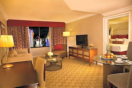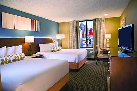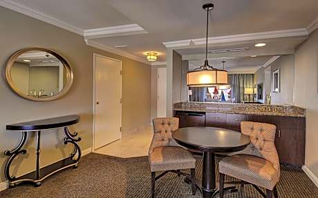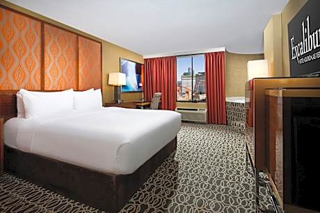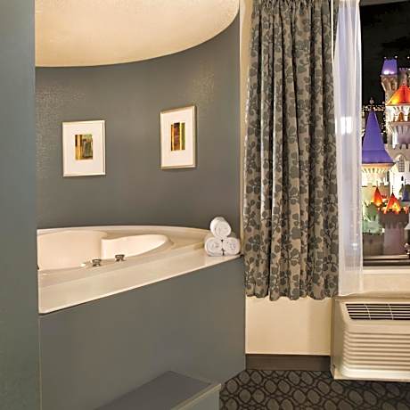 This castle-themed resort and casino is located central on the Las Vegas Strip. It features 4 seasonal outdoor pools, 14 restaurants, 100,000-square-foot casino and live nightly entertainment are provided. WiFi (included with the resort fee) is provided throughout rooms at Excalibur. Every room has a cable TV, a large bathroom with a hair dryer. The Excalibur Hotel and Casino provides a tour desk. Guests can browse the numerous on-site shops. There are 4 outdoor pools featuring a water slide, poolside cabanas, and an Adult Only Pool. A large gym with modern equipment is also available. Interstate 15 is 1 mile from the resort offering easy access to area attractions Harry Reid International Airport is 2.8 miles away and the University of Nevada-Las Vegas is 2.5 miles from the hotel.