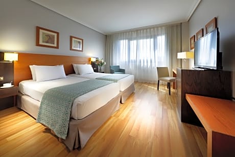 Surrounded by gardens, Exe Getafe is a 10-minute walk from Getafe Centro Train Station. It offers free WiFi, free public parking and air-conditioned rooms with satellite TV and a mini-bar. All rooms at the Exe Getafe Hotel are decorated with light colors and enjoy plenty of natural light. They include a safe and a private bathroom with hairdryer and toiletries. Central Madrid is just a 20-minute train journey away, while the Warner Bros and Faunia theme parks are within 15 minutes' drive of the hotel. Getafe Aérea Military Base is 1.2 mi away. The nearby A42 and M45 Motorways provide easy access to Madrid Barajas Airport and Juan Carlos I Trade Fair.