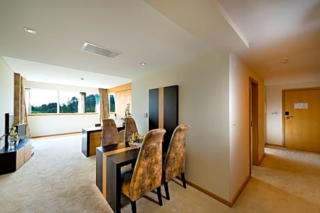 Located directly alongside Sameiro Park, just a short walk from Penafiel city center, the deluxe 4-star Penafiel Park Hotel & Spa combines contemporary design with traditional hospitality. Combining contemporary design and a forest setting, Penafiel Park Hotel & Spa’s rooms are decorated in contemporary style, with large paintings and African-style warm colors. Flat-screen TVs with satellite channels are standard in each room. The stylish Antonio Ferreira Gomez Restaurant serves a fine menu of Portuguese cuisine with international influences, alongside a rich list of local wines. From the lobby bar, guests can admire sweeping views over the valley and enjoy a local green wine. You can relax in the temple-like atmosphere of the Sensações Spa, where professional masseurs offer exfoliating massages, caviar facials and honey treatments. In addition, this state-of-the-art spa offers a wide range of beauty treatments, reflexology and shiatsu massages. An indoor pool and a steam bath are also available. Located in Penafiel, in the historical Sousa Valley, the Park Hotel & Spa overlooks the Sanctuary of Nossa Senhora da Piedade. The closest airport is Francisco Sá Carneiro, about 22 mi away in Porto.