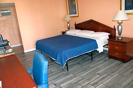 This Smoking Room features a king size bed, DirecTV with 100+ channels, and private bathroom. Most rooms also include a microwave and refrigerators but are subject to availability, please make sure to ask while making a reservation or checking in. Smoking is permitted in this room option.