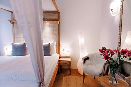 Features a four-poster bed, flat-screen TV and private bathroom with a shower and organic toiletries.