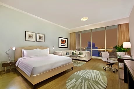 Ezdan Hotel, West Bay is not just a place that provides affordable accommodation; it is a community of people from around the globe. Accommodation ranging from a single room for a single night to apartments with three bedrooms can be your place to stay or let it be your home for years to come. Our Atrium boasts amenities that would serve guests from all walks of life. Our Ezdan Community enjoys the following: • 3,000 rooms of unparalleled luxury units and hotel rooms • Olympic size swimming pool • Health club with all equipment • International restaurants • A supermarket for your convenience • Fully equipped conference center with a wedding venue • Within walking distance to the largest shopping mall in the city • 25 minutes to Hamad International Airport • 05 minutes walking distance to Doha Exhibition and Convention Center (DECC)