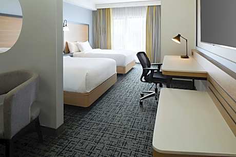 Offering free shuttle service to and from Montreal-Pierre Elliott Trudeau International Airport, this Dorval hotel is less than 12 mi from central Montreal. Free Wi-Fi and a continental breakfast are provided. A flat-screen TV and tea- and coffee-making facilities are found in each modern room at Fairfield Inn & Suites by Marriott Montreal Airport. Some rooms also include a microwave and a small refrigerator. The Napa Lounge offers a full service bar and 3-course dinners made from in-house items. Guests can also relax and catch up on sports or news on the lounge’s TV. Guests of the Marriott Fairfield Inn & Suites Montreal Airport can enjoy the indoor swimming pool, fitness center and games room. A business center and laundry facilities are also available. The Dorval Train Station is less than 5 minutes’ walk from the hotel. Parc du Mont-Royal is 25 minutes’ drive away. Weekday outdoor construction October 9-27, 2023 / Monday-Friday 7am-3pm. Noise disturbance is expected.