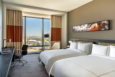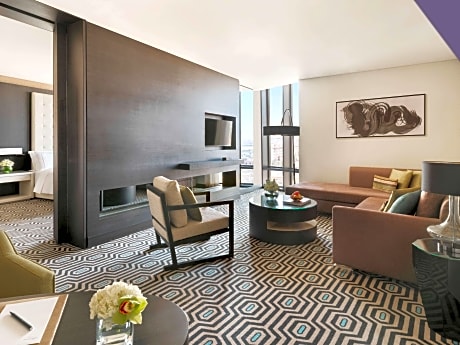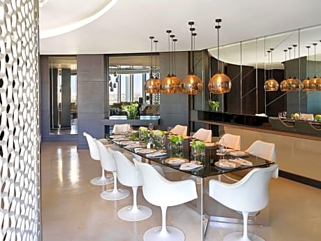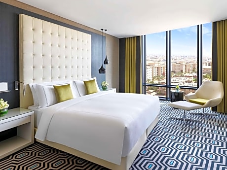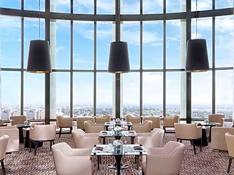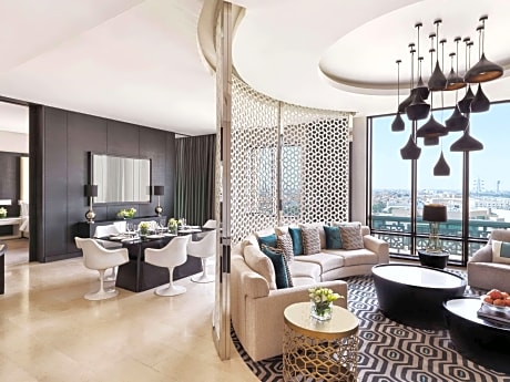 The Fairmont Riyadh, a luxury hotel and convention center, offers opulent accommodations in the Business Gate. Ideal for both business and leisure travelers, it's a mere 15-minute drive from the airport and 20 minutes from Riyadh City Center. The hotel boasts 298 rooms and suites, five distinct dining options, 4, 300 m² of meeting space, sophisticated event and wedding venues, an exclusive ladies' lounge, and Fairmont's signature spa and gym with an indoor swimming pool.