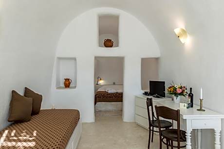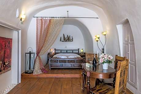 Request Type : Property Description Fanari Villas is a multi-level complex built on a cliff, with views of the caldera, Thirasia island and the sunset. It features suites carved in the rock and offers wellness treatments. Suites feature arched ceilings and handcrafted, wooden furniture, free Wi-Fi are standard. Laptops can be provided upon request. Each unit has a special seating area, in some separated from the bedroom. Some suites have private spa baths. The outdoor areas feature curved rooftops and terraces with bougainvillea flowers. Half of the swimming pool is open-air and half is enclosed in an arched cavern with a hot tub. Wellness options at Villas Fanari include massages, facials and hair-dressing appointments. A sauna is also available. The restaurant serves local cuisine with a modern twist. Meals are also served in the suites. The Sun Spirit Café-Bar serves refreshments and snacks. A Santorinian breakfast is served daily. The center of Oia is a 5-minute walk from Villas Fanari. The Prehistoric Settlement of Akrotiri and Ancient Thira are at 13 mi. Free private parking is possible on site.