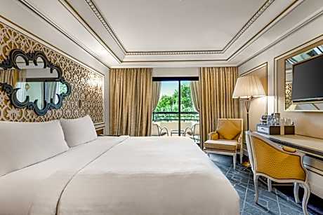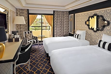 Set in the heart of Fez, in the city’s new quarter, Fes Marriott Hotel Jnan Palace offers air-conditioned rooms and an outdoor swimming pool, a gym and a sauna. Guest rooms at Fes Marriott Hotel Jnan Palace each feature a balcony and some rooms have views of the surrounding gardens or the pool. Each room has an private bathroom with complimentary toiletries and all rooms are serviced by a elevator. A full English breakfast is served each morning at the hotel and is available in guests’ rooms upon request. Fes Marriott Hotel Jnan Palace offers 3 restaurants serving Moroccan and international cuisine and 1 bar, including an English-style pub. Relaxation activities available include a spa offering a sauna and massage treatments. Fes Marriott Hotel Jnan Palace also offers a library where guests can relax. Shuttles to and from the airport and the nearby 18-hole Royal Golf de Fez are available for a supplement. Fes Marriott Hotel Jnan Palace is a 10-minute drive from the medina and 5 minutes from Fes Train Station.
