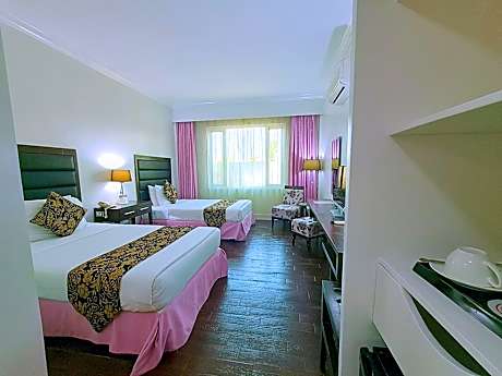 Fiesta Garden Hotel offers top-notch services and amenities, ensuring guests experience utmost comfort. Remain linked during your visit by utilizing the complimentary internet access available. The hotel offers complimentary parking for guests who arrive with their own mode of transport.Need some relaxation? Your room features daily housekeeping to make your stay even more comfortable and enjoyable.Crafted for coziness, every guestroom provides an array of features, guaranteeing a tranquil night's sleep while maintaining the level of comfort.For a more enjoyable stay, select rooms at hotel are equipped with linen service and air conditioning. For certain chosen rooms, guests can enjoy in-room amusement like television and cable TV as a part of their stay.Rest assured that your hydration needs will be met, as some guestrooms are equipped with a refrigerator, a coffee or tea maker, bottled water and mini bar.It is worth noting that certain guest bathrooms feature a hair dryer and toiletries for your convenience. Each morning at Fiesta Garden Hotel , a scrumptious, homemade breakfast kick-starts the day.Experience a fantastic evening effortlessly! Relish an entertaining night without venturing beyond the confines of the bar.Fiesta Garden Hotel provides a superb assortment of leisure amenities for guests to enjoy.Treat and spoil yourself by stopping at massage and spa for a memorable experience.Begin your holiday perfectly by taking a plunge into the swimming pool.At the hotel, enjoy a laid-back beverage experience by the poolside bar, sipping on a soothing cocktail.Eliminate those holiday calories by stopping by hotel and making use of their well-equipped exercise amenities.