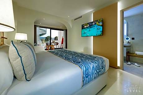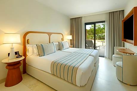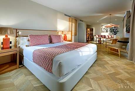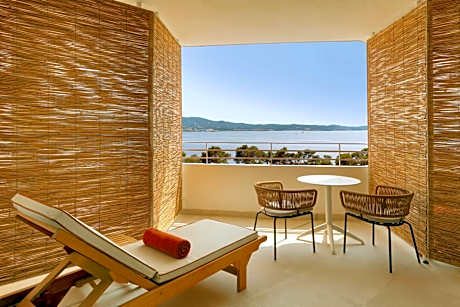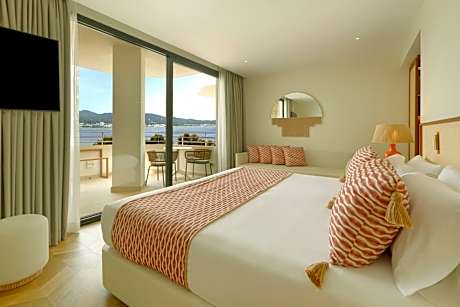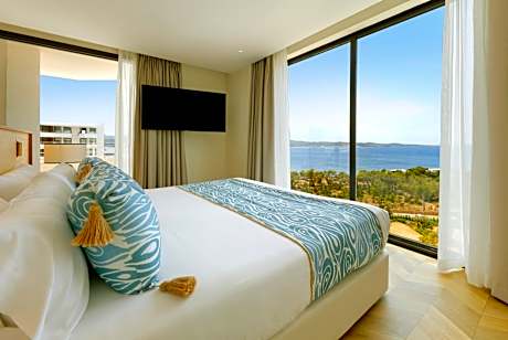 TRS Ibiza Hotel - Adults Only Hotel, a luxury hotel with direct access to the beach, is located in the San Antonio area next to Cala Gració and Cala Gracioneta, two beautiful coves with crystal clear waters surrounded by Mediterranean vegetation. This environment of great beauty is perfect for you to enjoy exclusive vacations as a couple or with friends that include premium services, an exquisite gastronomic offer of its 3 a la carte restaurants, the All Inclusive that goes further beyond excellence. The Signature Level rooms includes services, amenities, exclusive drinks, mini-bar. Exclusive hammock area in our Gravity Sky Lounge with infinity pool and bar service. Access to the Zentropia Spa to enjoy water circuit. Exclusive pool for Signature Level guests in the IO zone. Selected events at Ushuaia and Hi club. Dine out, that include exclusive menus in a selection of Ibiza´s restaurants. TRS Ibiza offers you rooms and suites with hydromassage bathtubs, treatments and massages from Zentropia Palladium Spa & Wellness, three restaurants and four bars, three swimming pools and a complete menu of activities like yoga, Pilates and live music. TRS Ibiza is for adults 16 years old and above.