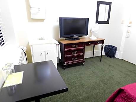 This simply furnished room includes cable TV and a sink. A toilet and shower, shared with other guests, is located just down the hall.