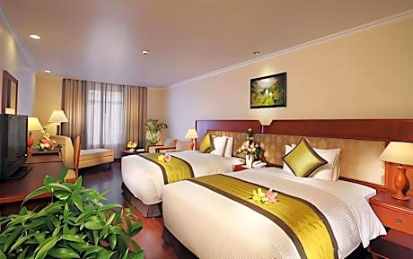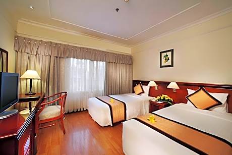 Great care is taken to ensure guests experience comfort through top-notch services and amenities. Stay connected with your associates, as complimentary Wi-Fi is available during your entire visit. To facilitate your arrival and departure, you can pre-book airport transfer services prior to checking in. The hotel offers taxi and car hire amenities for your ease in navigating around Ho Chi Minh City.When arriving by car, you'll be grateful for the on-site complimentary parking at hotel.The hotel offers reception amenities including concierge service, express check-in or check-out, luggage storage and safety deposit boxes to ensure a comfortable stay for guests. The hotel also features a fireplace, providing a cozy ambience during cool evenings. Whether you're here for an extended stay or simply require fresh garments, the hotel ensures your cherished travel attire remains spotless and accessible with the convenience of laundry service located on the premises.Your stay will be comfortable with the presence of 24-hour room service, room service and daily housekeeping as an in-room amenity for your relaxation and enjoyment.Need something at the last minute? The convenience stores has you covered, ensuring your requirements are met without any inconvenience. To ensure the well-being and convenience of all visitors, smoking is strictly prohibited throughout the entire hotel. Smoking is permitted solely in the specified smoking zones allocated by hotel.In order to ensure the utmost level of relaxation, the guestrooms feature an inviting design and are equipped with all basic necessities, creating a delightful stay experience. To ensure a pleasant stay, a selection of rooms at hotel come furnished with linen service, blackout curtains and air conditioning, all designed with your ease in mind. In select rooms, visitors can enjoy a touch of amusement with the availability of daily newspaper, television, in-room video streaming and cable TV for their entertainment needs.Within specific rooms, a refrigerator, bottled water, a coffee or tea maker, instant coffee, instant tea and mini bar is conveniently available for your use.Understanding the significance of bathroom facilities in enhancing visitor contentment, hotel offers a hair dryer, toiletries and bathrobes within a few chosen chambers. Each day, arise to a delightful complimentary morning meal at First Hotel.How about kicking off each day of your getaway with a delicious cup of coffee? At the hotel, relish in the invigorating taste of a freshly brewed, excellent coffee. Various excellent meal offerings at hotel ensure that enticing and easily accessible options are constantly available.Upon arrival, make sure to explore karaoke rooms and bar to experience enjoyable evening entertainment within the premises.Visitors wishing to create their personal culinary delights will appreciate the on-site BBQ facilities provided at this establishment. Throughout the day, engage in the entertaining activities available at First Hotel.Unwind and conclude each day delightfully by stopping by massage, hot tub, salon, steam room, spa and sauna, ensuring a soothing experience.Unwind by the pool at hotel and cherish a leisurely moment. Enjoy a refreshing beverage al fresco at hotel's poolside bar savoring your preferred concoction.Guests who enjoy maintaining their fitness regimen while on holiday can visit the fitness center provided by hotel.