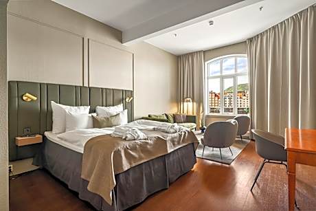 This central hotel is in Bryggen, Bergen’s old Hanseatic harbor area. It is about 0.6 mi from the train and bus stations and offers free WiFi, gym and sauna access. Each guest room at Home Hotel Bryggen has satellite TV and a work desk. All guest rooms offer views of the street, courtyard or mountains. Rooms on higher floors have harbor views. Airport busses stop 656 feet from Home Hotel Bryggen. Three of Bergen’s ferry terminals are less than 15 minutes walk away. The Fløibanen funicular and the Fish Market are both within 3 minutes’ walk of Hotel Marin.