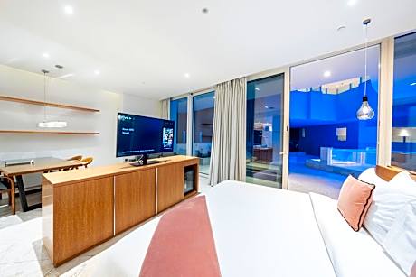FIVE Jumeirah Village offers top-notch services and amenities, ensuring guests experience utmost comfort. Remain linked during your visit by utilizing the complimentary internet access available. Prior to your check-in date, you can arrange airport transportation services, guaranteeing a seamless and efficient experience for both arrival and departure.Services offered by taxi and car hire at the hotel ensure effortless exploration of Dubai.Parking is accessible, supplied by the hotel for guests who arrive by car.Effortlessly plan your daily activities and travel requirements with concierge service and safety deposit boxes provided by the front desk services. For extended visits or whenever required, the dry cleaning service and laundry service ensures your preferred travel garments remain clean and accessible.During leisurely days and evenings, in-room amenities such as 24-hour room service, room service and daily housekeeping enable you to maximize your stay in the room.In limited designated zones, smoking is exclusively permitted.Crafted for coziness, every guestroom provides an array of features, guaranteeing a tranquil night's sleep while maintaining the level of comfort. For an elevated experience at hotel, select rooms are equipped with air conditioning to improve your stay. Each morning at FIVE Jumeirah Village, a scrumptious, homemade breakfast kick-starts the day. During your visit, indulge in a range of delightful culinary choices at hotel to enhance your experience.Enjoy an entertaining evening alongside your fellow travelers at hotel's very own bar and nightclub. FIVE Jumeirah Village provides a superb assortment of leisure amenities for guests to enjoy. Treat and spoil yourself by stopping at massage and spa for a memorable experience.Begin your holiday perfectly by taking a plunge into the swimming pool. At the hotel, enjoy a laid-back beverage experience by the poolside bar, sipping on a soothing cocktail. Eliminate those holiday calories by stopping by hotel and making use of their well-equipped exercise amenities.