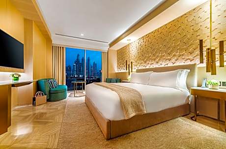 FIVE Palm Jumeirah Dubai offers top-notch services and amenities, ensuring guests experience utmost comfort. Remain linked during your visit by utilizing the complimentary internet access available.Prior to your check-in date, you can arrange airport transportation services, guaranteeing a seamless and efficient experience for both arrival and departure. Services offered by taxi and car hire at the resort ensure effortless exploration of Dubai.Parking is accessible, supplied by the resort for guests who arrive by car. Effortlessly plan your daily activities and travel requirements with concierge service and safety deposit boxes provided by the front desk services.Securing passes to the city's top attractions is simple with the resort's ticket service and tours. For extended visits or whenever required, the dry cleaning service and laundry service ensures your preferred travel garments remain clean and accessible. During leisurely days and evenings, in-room amenities such as 24-hour room service, room service and daily housekeeping enable you to maximize your stay in the room. In limited designated zones, smoking is exclusively permitted.Crafted for coziness, every guestroom provides an array of features, guaranteeing a tranquil night's sleep while maintaining the level of comfort. For a more enjoyable stay, select rooms at resort are equipped with linen service, blackout curtains and air conditioning.At FIVE Palm Jumeirah Dubai, guests can choose from a variety of room configurations, some of which feature separate living room and balcony or terrace. For certain chosen rooms, guests can enjoy in-room amusement like television and cable TV as a part of their stay. Rest assured that your hydration needs will be met, as some guestrooms are equipped with a refrigerator, bottled water, a coffee or tea maker, instant coffee, instant tea and mini bar. It is worth noting that certain guest bathrooms feature a hair dryer, toiletries and bathrobes for your convenience. Each morning at FIVE Palm Jumeirah Dubai, a scrumptious, homemade breakfast kick-starts the day.Begin your holiday mornings right with your essential cup of coffee, offered daily at the cafe on-site.During your visit, indulge in a range of delightful culinary choices at resort to enhance your experience.Concerned about your dining preferences? Fret not! FIVE Palm Jumeirah Dubai offers an assortment of culinary varieties featuring halal choices, catering to all tastes.Enjoy an entertaining evening alongside your fellow travelers at resort's very own bar and nightclub.FIVE Palm Jumeirah Dubai provides a superb assortment of leisure amenities for guests to enjoy.During your stay, the resort provides direct access to a beach, ensuring you remain near the sea throughout your visit. Treat and spoil yourself by stopping at massage, steam room, spa and sauna for a memorable experience.Begin your holiday perfectly by taking a plunge into the swimming pool.At the resort, enjoy a laid-back beverage experience by the poolside bar, sipping on a soothing cocktail. Eliminate those holiday calories by stopping by resort and making use of their well-equipped exercise amenities.