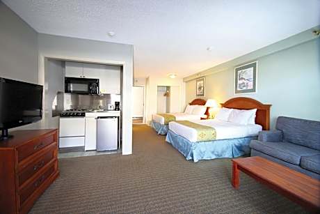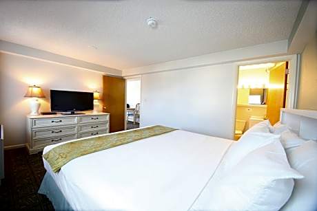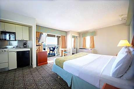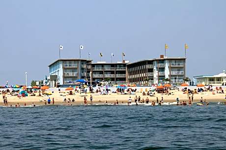 This oceanfront hotel is located directly on the Ocean City Boardwalk and features indoor and outdoor swimming pools. The hotel has 2 on-site restaurants and a poolside bar. A microwave and refrigerator are included in every 1st-floor guest room at the Flagship Oceanfront. The rooms have cable TV and an private bathroom. Morning coffee, tea, and fruit are available to all guests. Jonah and the Whale All-You-Can-Eat Seafood and Rip Tide Bar and Grill are on-site. A fitness center and laundry facilities are provided. The Ocean City Flagship hotel has an indoor hot tub, a courtyard with children’s playground, and free Wi-Fi. Jolly Roger Amusement Park and Ocean City Convention Center are 1 mi from the property.
