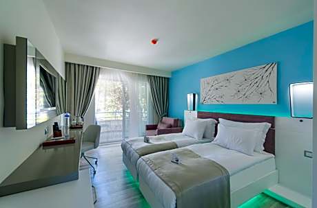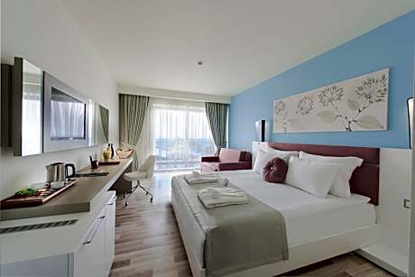 Located at the seafront, Flora Garden Ephesus Kusadası - All Inclusive Hotel has a private blue flag sandy beach with free sun loungers, parasols and towels. The hotel has an indoor and outdoor pool, fitness center, tennis court and a sauna. Kids' club, children playground and children pool is also offered. Featuring parquet floors and free WiFi throughout the property, the rooms of Flora Garden Ephesus Kusadası - All Inclusive include a flat-screen TV, air conditioning and a mini-bar. Some rooms have sea views. All guests will receive free fruit plate and wine. Soft drinks in the mini-bar are also free of charge. The restaurant serves breakfast, lunch and dinner as an open buffet. The hotel offers all-inclusive service including all meals, and all local alcoholic and soft drinks. Guests can enjoy à la carte restaurant with a reservation. Kusadası Town Center is 9.3 mi from the property while Ephesus is 22 mi. Property is 25 mi from House of the Virgin Mary. Izmir Adnan Menderes Airport is 57 mi away while Milas-Bodrum Airport is 70 mi from the hotel.