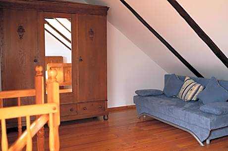The quadruple room offers a dining area, a wardrobe, as well as a private bathroom boasting a shower and a hairdryer. Guests can make meals in the kitchen that is fitted with a stovetop, a refrigerator, a dishwasher and kitchenware. This quadruple room features heating and a flat-screen TV. The unit has 4 beds.