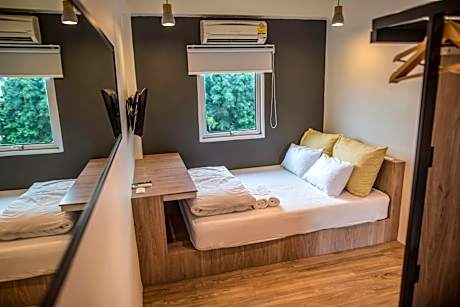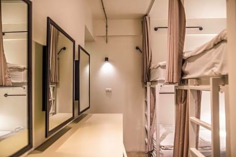 Jam Hostel Bangkok features a shared lounge, terrace, a restaurant and bar in Bangkok. Featuring a garden, the 3-star hostel has air-conditioned rooms with free WiFi, each with a private bathroom. The hostel provides an outdoor swimming pool and a shared kitchen. Every room comes with a safety deposit box, while selected rooms include a balcony and others also provide guests with city views. The hostel has a grill. Popular points of interest near Jam Hostel Bangkok include Khao San Road, Bangkok National Museum and Wat Saket. Don Mueang International Airport is 16 miles away, and the property offers a paid airport shuttle service.