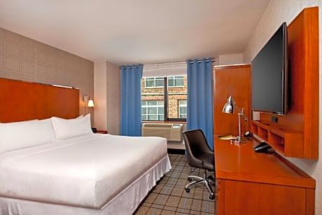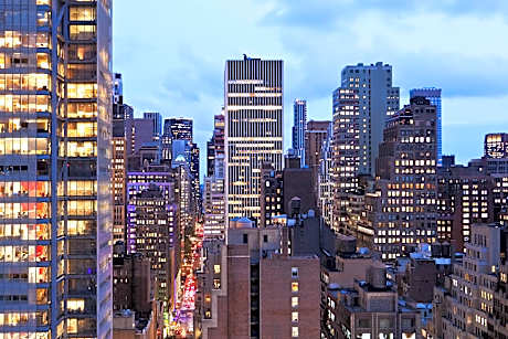 Nestled just steps from the vibrant Theater District and a short walk from iconic Times Square, our hotel offers a modern stay in the heart of Midtown Manhattan. Each room features complimentary Wi-Fi, a 48-inch flat-screen cable TV, and a coffee maker. Select rooms provide stunning city views, perfect for capturing the essence of New York. Indulge at Sammy’s Bar, where you can enjoy a bite to eat and handcrafted cocktails in a relaxed atmosphere. Stay active in our fully-equipped fitness center, and kick-start your day with a delicious breakfast, available for an additional fee. Conveniently located 377 feet from the 42 Street – Port Authority Bus Terminal subway station, our hotel is just 0.9 mi from the iconic Empire State Building, placing the best of the city within easy reach.