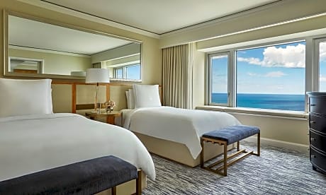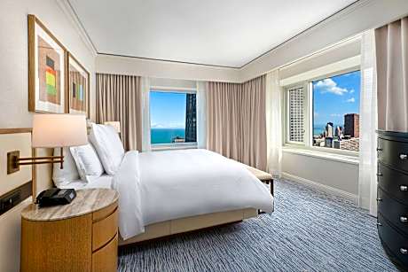 Each room is beautifully remodeled with marble bathrooms and Le Labo toiletries, offering panoramic views of the Chicago skyline or Lake Michigan. Guests can enjoy modern amenities such as a flat-screen LCD TV and an iHome clock radio.