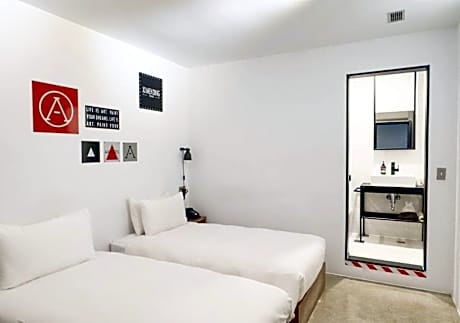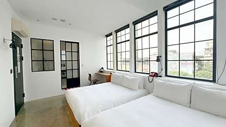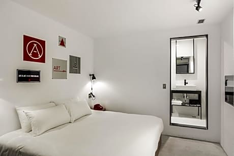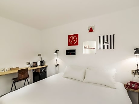 This double room features air conditioning, heating and soundproofing with industrial design features. Extras offer a mini-bar, branded coffee capsule and tea bags.