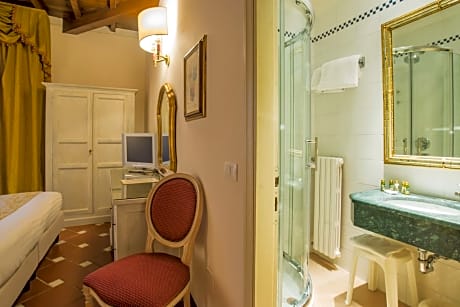 The Atlantic Palace is a historic hotel beside Florence Santa Maria Novella Train Station. The rooms of the restored 14th-century monastery offer a classic style, an LCD TV, and air conditioning. Rooms still feature period elements including wooden-beamed ceilings, terracotta floors and a marble bathroom with shower. Some rooms offer views of Florence's Cathedral. Breakfast is a generous American buffet including Tuscan specialties. It is served in a bright room with views of the internal garden. The Atlantic is just 10 minutes' walk from Fortezza Da Basso exhibition center. Free newspapers are available in the lobby, and the bar serves international cocktails. There are steps in some areas of the property. For any special requests, please contact the property. License Number(s): 048017ALB0012, IT048
